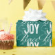 Holiday wrapping paper with white text that reads Peace & Joy. You can customise the teal background to be any colour you want.