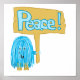 This cute little teal peace person is holding a sign that says PEACE in blue letters. Cute little puffy creature wants you to help spread the word for peace on earth.