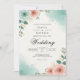 Soft watercolor washes of teal and peach create a romantic, ethereal atmosphere. Delicate floral accents frame this elegant design, evoking a sense of gentle beauty. Perfect for a dreamy, nature-inspired union.
