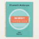 Design in teal, peach and, white for planning your groovy third age of your life. Place for your name and the year.