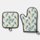 Teal Peacock Feather Pattern Monogram Oven Mitt & Pot Holder Set