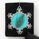 Teal Peacock Feather Snowflake Pewter Christmas Ornament