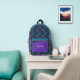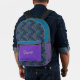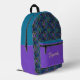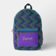 Teal Peacock Feathers and Purple Gold Monogram Printed Backpack