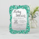 Elegant teal peacock feathers on white to grey gradient Baby Shower invitations. Very classic and sophisticated design for the mum to be. Personalise with your own message and monogram on the back. All photo print design.
