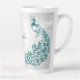 Enjoy your latte or morning coffee with a Teal Peacock Personalised Latte Mug. Mug design features a vibrant teal peacock, a soft white leaf vine against a light grey grunge background with an area to personalise with your name. Additional gift items available with this design as well as a variety of colours.