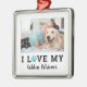 This modern holiday ornament for dog lovers features "I LOVE MY" wording in modern and bold black lettering with a teal / turquoise blue coloured animal paw print accent. Personalise the black script with the type of pet or the pet's name Add a favourite horizontal photo. White background colour.