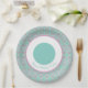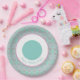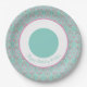 Stylish and pretty patterned happy birthday plates, text can be changed to suit any special celebration, teal background and centre colours can be changed to any colour to suit your event.
