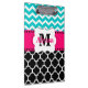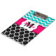 Show off your style in a fun way with this hot pink, teal, and black quatrefoil and chevron modern and trendy personalised clipboard.