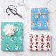 Teal, Pink, Blue Snowman Christmas Wrapping Paper Sheet