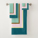 Light and dark teal green, pastel pink, cream, brown geometric block pattern. Original Design by TamiraZDesigns.