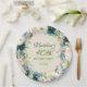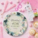 Elegant 40th birthday party custom paper plates for women with teal, cream-coloured, and pink watercolor vintage floral. Personalised with her name, age, and party date. Contact me for assistance with your customisations or to request additional matching or coordinating Zazzle products for your event.
