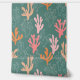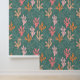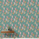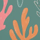 Ocean themed peel and stick wallpaper for your bathroom with a coral pattern with pink and orange coral shapes against a teal background. Eye catching coral pattern wallpaper with a peel and stick function for your bathroom in a palette of muted teal, orange, and different shades of pink.