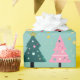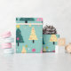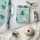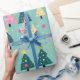 Teal Pink Retro Christmas Trees Wrapping Paper