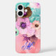 TEAL PINK ROSES AND ANEMONE FLOWERS MONOGRAM Case-Mate iPhone CASE