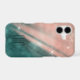 Pink streaks of light against a dark teal sky background make this phone case special for anyone. Tiny bits of faux glitter at the top and bottom add extra interest, and white star shine points make it seem to glow. Your two letter monogram is near the bottom. This phone case will be noticed!