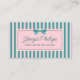 Retro striped business card in teal and pink with a coquette little bow. The feminine look makes the business card perfect for beauticians, boutique owners, event planners, interior designers, makeup artists, hair stylists, jewelry makers, candy maker, scented candle maker, and more. Personalize with your name or business name in a pretty script.