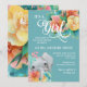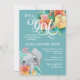 Teal Pink Yellow Floral Elephant Baby Girl Shower Invitation