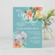 Pastel teal, pink, and yellow floral with an adorable elephant baby girl baby shower invitation
