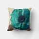 Teal Poppy flower art pillow. Botanical. floral