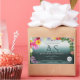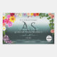 Make a lasting impression with this lovely and elegant monogrammed product label design featuring many different colourful flowers on a teal gradient background with a shimmery frame.