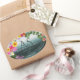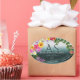 Make a lasting impression with this lovely and elegant monogrammed product label design featuring many different colourful flowers on a teal gradient background with a shimmery frame.