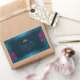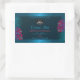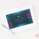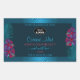 Make a lasting impression with this elegant and exotic product label design featuring pretty purple and red hawaiian flowers with teal palm leaves on a dark teal background. A cool palm leaf shadow matching to the shimmery border frame.
