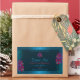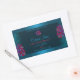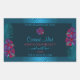 Make a lasting impression with this elegant and exotic product label design featuring pretty purple and red hawaiian flowers with teal palm leaves on a dark teal background. A cool palm leaf shadow matching to the shimmery border frames.