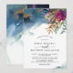 Elegant and unique Wedding invitation with beautiful watercolor stains flowing on back top area and exquisite right corner floral detail. Watercolor stains, as well as foliage and floral elements in an artistic blend of purple, fuchsia, magenta, teal, turquoise, blue, navy, mustard, golden yellow and green hues. Back of card with attractive watercolor stains and corner floral detail showcasing couple's initials. Part of our "Mystic Garden" collection with a variety of coordinating products available.