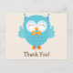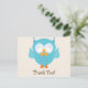 Cute, simple Turquoise Blue & Purple Boy Owl Thank You note. Can be used for Baby Shower thank you cards, kid's birthday thanks or other shower / party occasions.