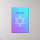 Purple and teal blue personalised Bat Mitzvah sign-in board canvas. Have your family and friends sign this custom canvas for a memorable guestbook keepsake. Easily personalise for your event. Matching products available.