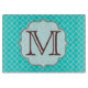 Teal Quarterfoil Lattice Quarter Foil Monogram Initial Personalised Custom Fabric Pattern Glass Cutting Board