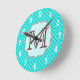 Teal Quarterfoil Lattice Quarter Foil Monogram Initial Personalised Custom Fabric Pattern Wall Clock
