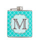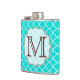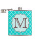 Teal Quarterfoil Monogram Initial Whiskey Flask