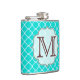 Teal Quarterfoil Lattice Quarter Foil Monogram Initial Personalised Custom Fabric Pattern Whiskey Flask