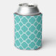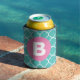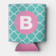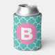Teal Quatrefoil Pattern Custom Pink Monogram Can Cooler