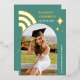 Celebrate your graduation in style with this unique teal graduation announcement! This eye-catching design features a modern arch with delicate stars and a whimsical rainbow, all printed in real gold foil for a touch of luxury. The teal background adds a touch of sophistication. Personalise it with your name, school, class year, and a special message to create a truly unique keepsake. Perfect for sharing your achievement with friends and family. Printed on high-quality card stock with a variety of paper types and finishes to choose from.