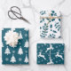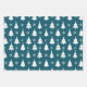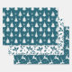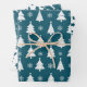 Teal Reindeer, Christmas Tree and Holly Patterns Wrapping Paper Sheet
