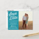 Teal Retro Script Photo Save the Date Postcard