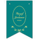 Create a special bunting flag banner as part of your wedding celebration. This wedding bunting banner features the name of the wedding couple and the date of the wedding. Teal and gold. Teal Rose design. Use the template to personalise.