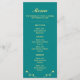 Add an elegant touch to your wedding festivities with this teal and gold wedding menu. The front features the menu items. The back of the menu has the name of the wedding couple and the date of the wedding. Teal Rose design. Use the template to personalise.