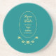 Add an elegant touch with this teal and gold wedding save the date coaster. The front features a rose design and "Save the Date," along with the name of the couple and the date of the wedding ceremony. Use the template to personalise.