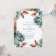 Elegant teal watercolor roses paired with warm copper leaves create a romantic and modern floral frame design. This invitation features floral arrangements in all four corners with a clean white center, perfect for adding your wedding details. Ideal for fall weddings, winter weddings, boho celebrations, and modern romantic themes. Beautiful for invitations, RSVP cards, details cards, programs, and full wedding stationery suites.
