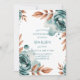 Elegant teal watercolor roses paired with warm copper leaves create a romantic and modern floral frame design. This invitation features floral arrangements in all four corners with a clean white center, perfect for adding your wedding details. Ideal for fall weddings, winter weddings, boho celebrations, and modern romantic themes. Beautiful for invitations, RSVP cards, details cards, programs, and full wedding stationery suites.