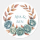 Teal Roses and Copper Leaves Wedding Classic Round Sticker