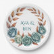 Teal Roses and Copper Leaves Wedding Paper Plate