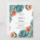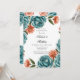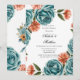 A beautiful floral wedding design featuring watercolor teal roses and soft coral daisies arranged in elegant corners on a clean white background. Perfect for modern romantic weddings, bridal showers, or engagement invitations. This design blends classic charm with a touch of contemporary style, creating a timeless and sophisticated look for your special day.