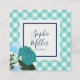 Teal Roses Floral and Mint Gingham Square Business Card