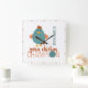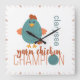 Teal & Rust Yarn Chicken Champion Square Wall Clock