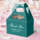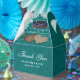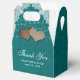 Put your bridal shower/wedding gifts into these romantic rustic teal favour boxes featuring white floral lace and string lights on a burlap background.