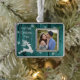 Capture the warmth of the season with this Teal Rustic Christmas Reindeer Framed Photo Ornament, featuring a charming Christmas reindeer and falling snowflakes set against a cosy rustic wood background. The simple layout and festive typography beautifully showcase your favourite photo, making it a heartfelt holiday photo keepsake. Perfect for celebrating our first Christmas and adding a touch of rustic charm to your Christmas decor.